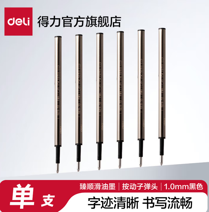 得力(deli)SE9-05 抒云系列臻顺滑金属按动签字中性笔(0.5mm/0.7mm/1.0mm)得力SE9-05抒云0.5mm替芯