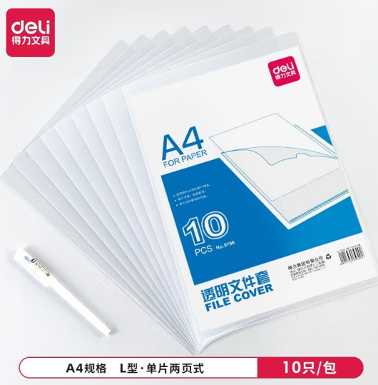 得力 5706-透明文件套 A4单页透明文件袋(10只)